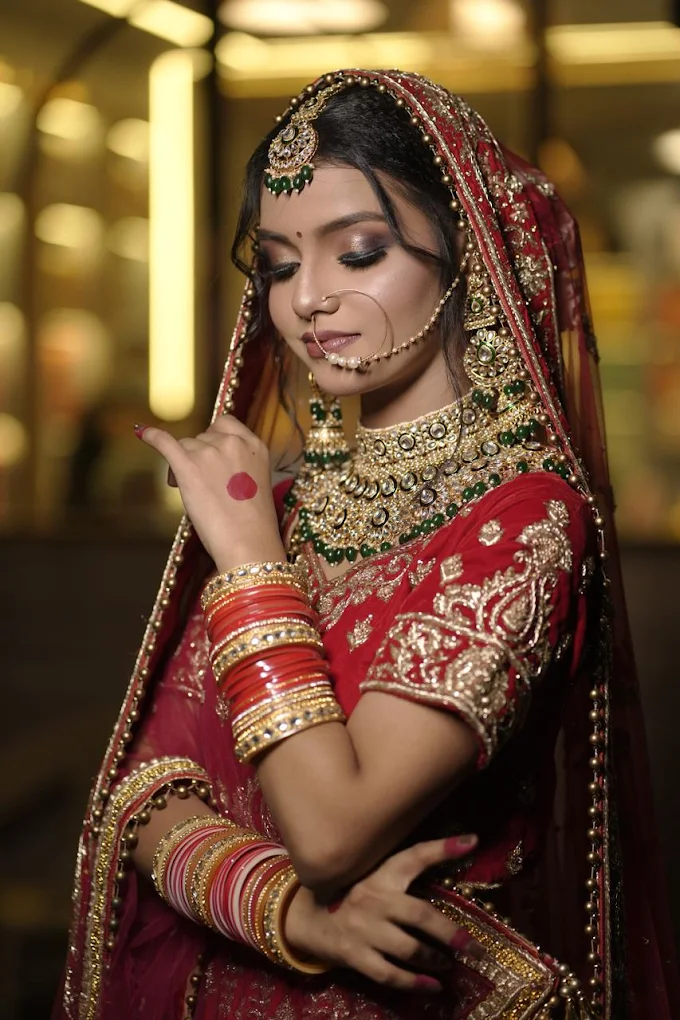 Professional bridal makeup, hairstyling & complete look preparation for your special day.